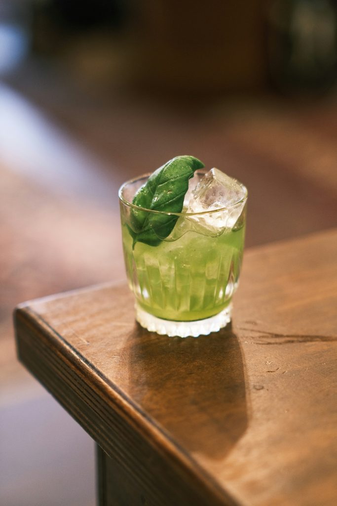 Écraser légèrement les feuilles de basilic dans un shaker, ajouter les autres ingrédients avec de la glace, shaker énergiquement puis filtrer finement. Servir dans un verre old fashioned rempli de glace pilée. Décorer d’une tête de basilic.